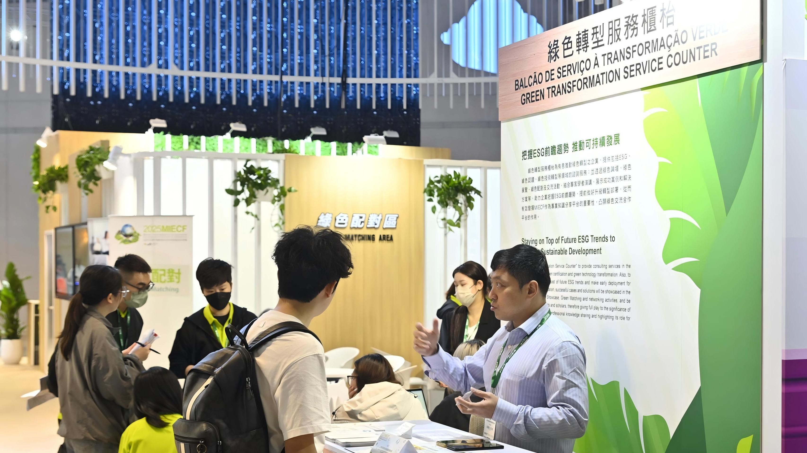 Com vista a aprofundar ainda mais o intercâmbio empresarial, no sentido de acelerar a conversão dos resultados dos projectos celebrados durante o MIECF, será criado o Centro de Sinergia Verde, que integra a Zona de Bolsas de Contactos Verdes, a Zona de Contactos Empresariais, o Balcão de Serviço à Transformação Verde e o Salão VIP Verde. O espaço combinará sistemas tecnológicos de emparelhamento e exibição multimédia, de maneira a satisfazer as necessidades de contacto comercial a diversas escalas, para níveis variados e entre diferentes sectores.