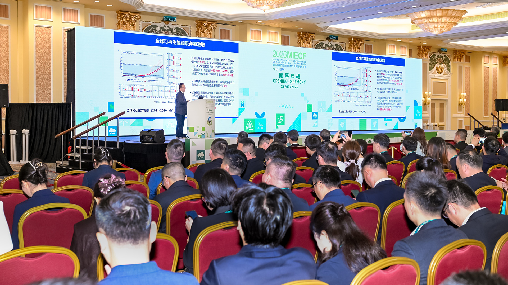 “2026年澳門國際環保合作發展論壇及展覽”(下稱“2026MIECF”)邀請清華大學環境學院教授、清華大學碳中和研究院院長、中國工程院院士賀克斌於今(26)日開幕典禮上擔任主題演講嘉賓,賀克斌院士以“雙碳行動與無廢城市建設”為題發表主題演講,結合“雙碳”目標,系統梳理國家“無廢城市”建設的工作進展,並就深化固廢治理與“雙碳”目標的協同推進,提供實踐參考與政策建議。